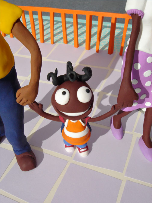 This picture illustrates an article on the importance of the presence of parents at school, especially bringing the small kids inside the gates to make them feel more comfortable in this environment. Made of plastic clay and colored paper, illuminated and photographed, this series of illustrations was created for Nós da Escola magazine, a MultiRio monthly publication aimed at teachers. The cartoon-humor style was used to illustrate controversial themes, which rarely had any photography.