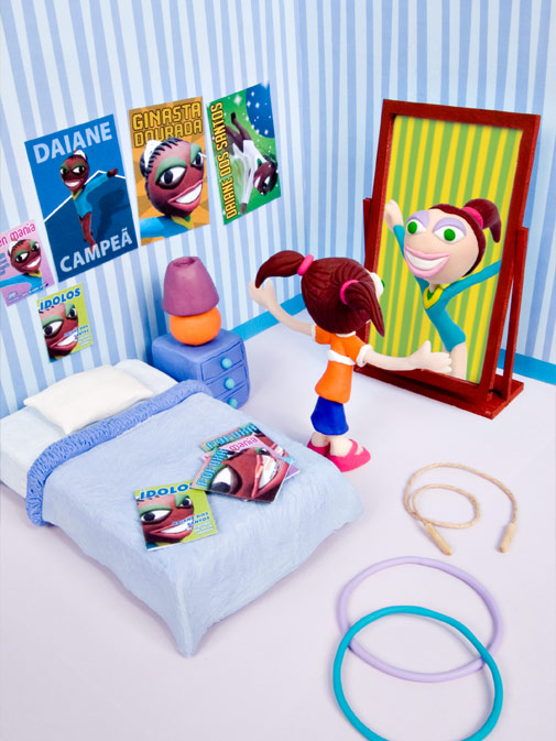 This picture illustrates an article on how idols influence children. In this illustration I tried to put the focus on the way kids change their auto image based on their admiration of someone special. Made of plastic clay and colored paper, illuminated and photographed, this series of illustrations was created for Nós da Escola magazine, a MultiRio monthly publication aimed at teachers. The cartoon-humor style was used to illustrate controversial themes, which rarely had any photography.