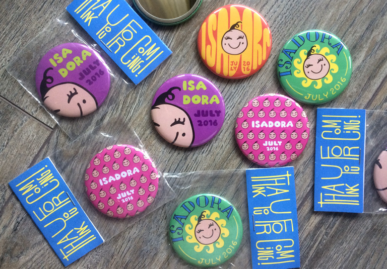 Isadora is my own beloved daughter. A few months before her arrival, we received family and friends for a baby shower party. To celebrate the special moment and to thank them all, I created a series of custom pocket mirrors to give away as thank you gifts. Besides the layout and illustrations, I took the opportunity to hand draw all the lettering to make it feel more personal and casual. The colour palettes and layouts helped to create fun, colourful and contemporary souvenirs that don’t look overly babyish or girly. The production was beautifully done by Awesome Merchandise.