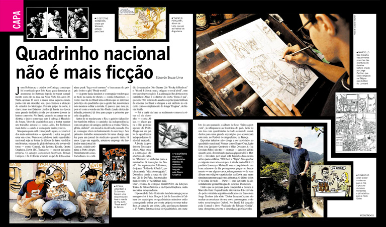 O Globo is one of the most important newspapers in Brazil. It is part of a huge communications conglomerate, which includes open and cable TV channels, Internet services, radios and publishing houses spread all over Brazil. This page, published on January 8th, 2002 in the teen magazine, was about the growing of the comics market in Brazil.